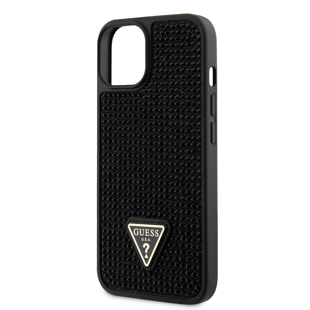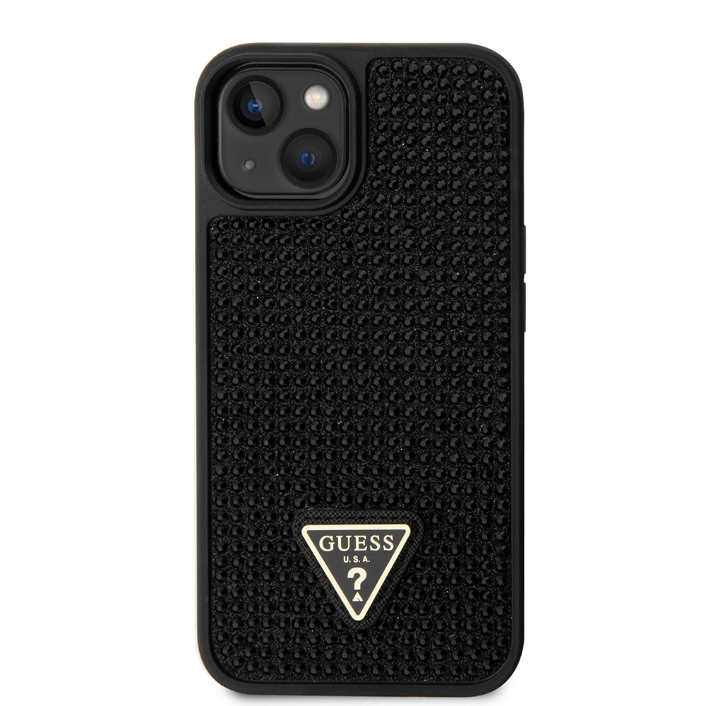 Apple iPhone 14 Kılıf Guess Orjinal Lisanslı Taşlı Arka Yüzey Üçgen Logolu Kapak SIYAH