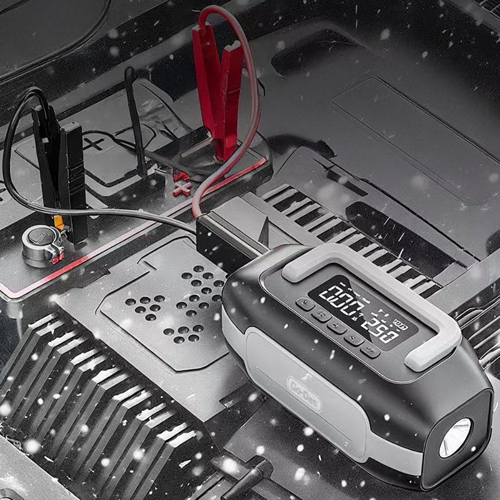 Go-Des GD-B636 LED Işıklı Araç Akü Acil Durum Takviye Güç Kaynağı ve Hava Kompresörü 10000mAh