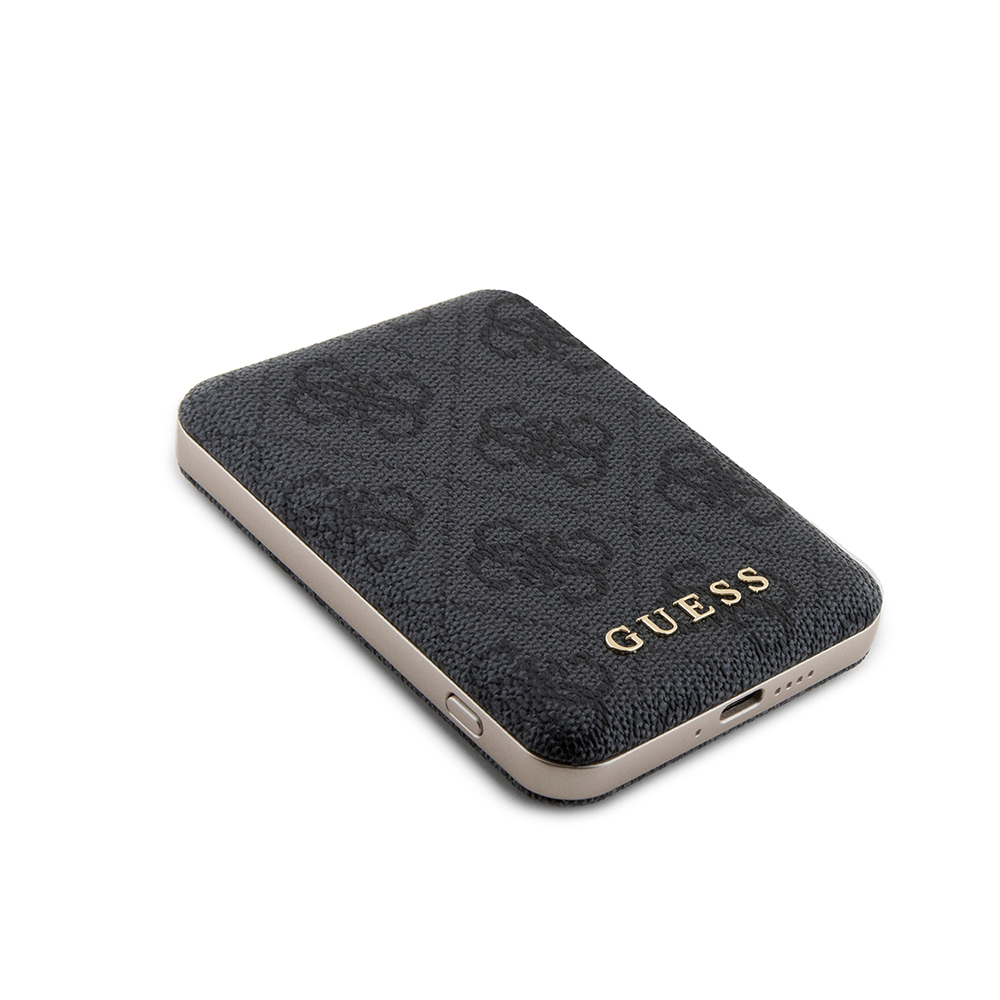 Guess Orjinal Lisanslı Dijital Led Göstergeli PU Deri 4G Desenli Metal Yazı Logolu Powerbank 5000mAh 15W SİYAH