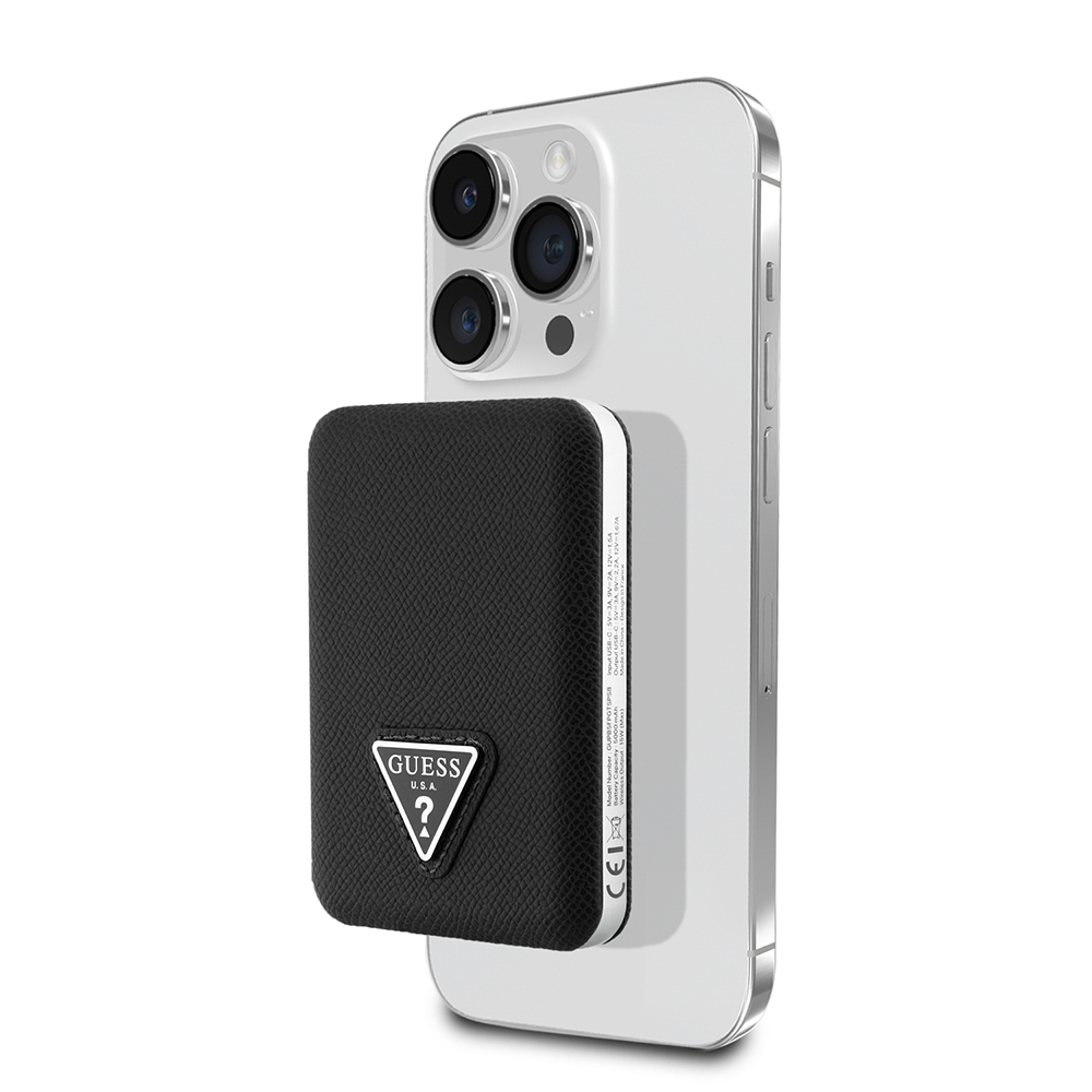 Guess Orjinal Lisanslı Dijital Led Göstergeli PU Deri Yüzey Üçgen Logolu Powerbank 5000mAh 15W SİYAH