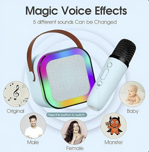 K12 Kablosuz Bluetooth Hoparlör Karaoke Mikrofon 5 Ses Efektli Rgb Hd Stereo ?es Usb/Sd/FM