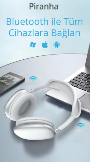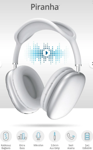 PİRANHA Kablosuz kulaklık - Ekstra bass - Mikrofon - 3.5mm Aux in - Sesli arama - Müzik çalar - Şarj edilebilir