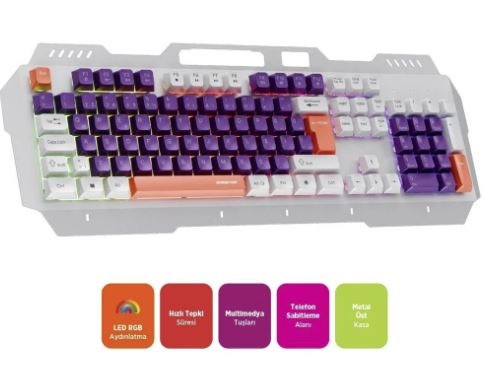 PGM36 Kablolu Rgb Aydınlatmalı Gaming Oyuncu Klavye Mor